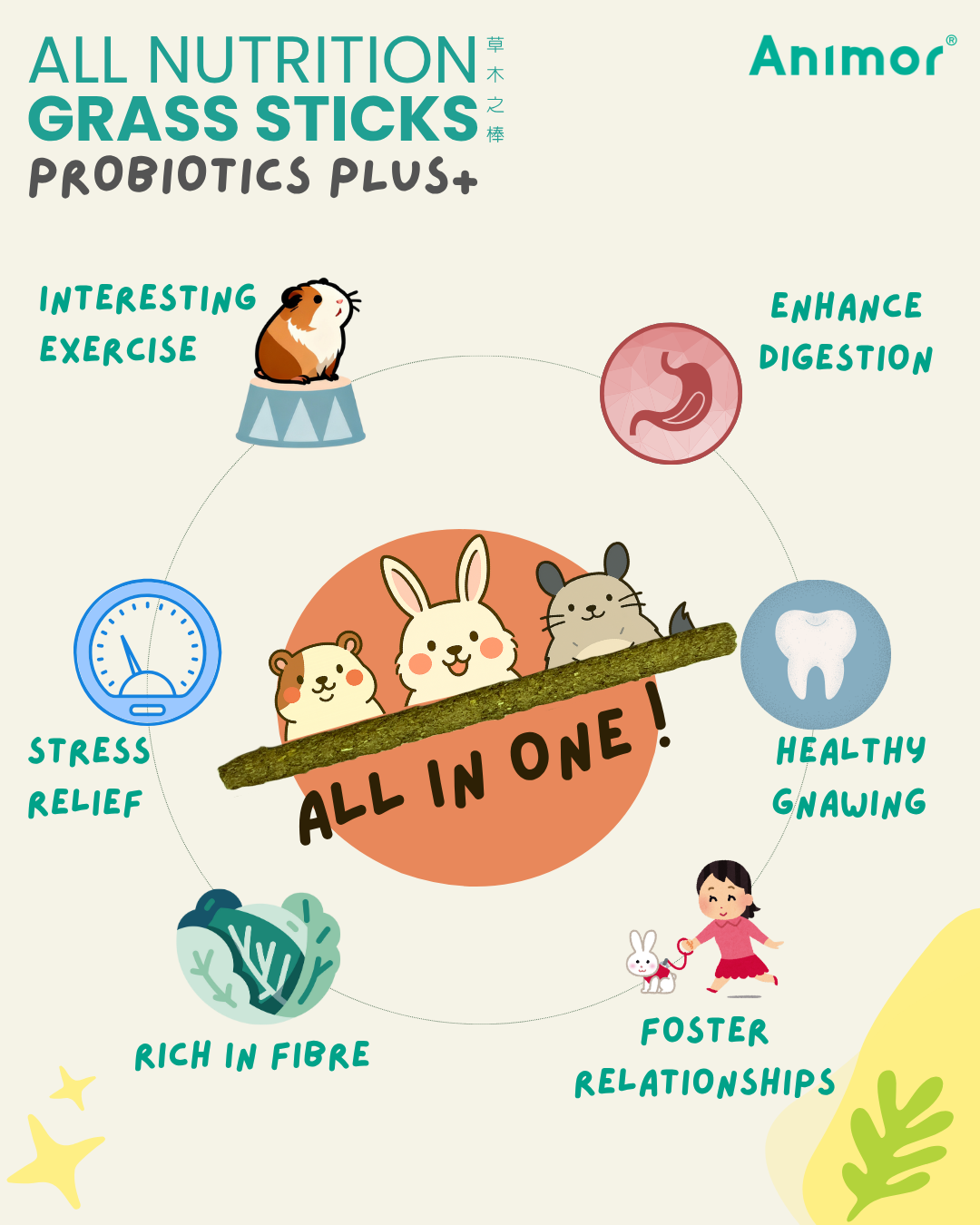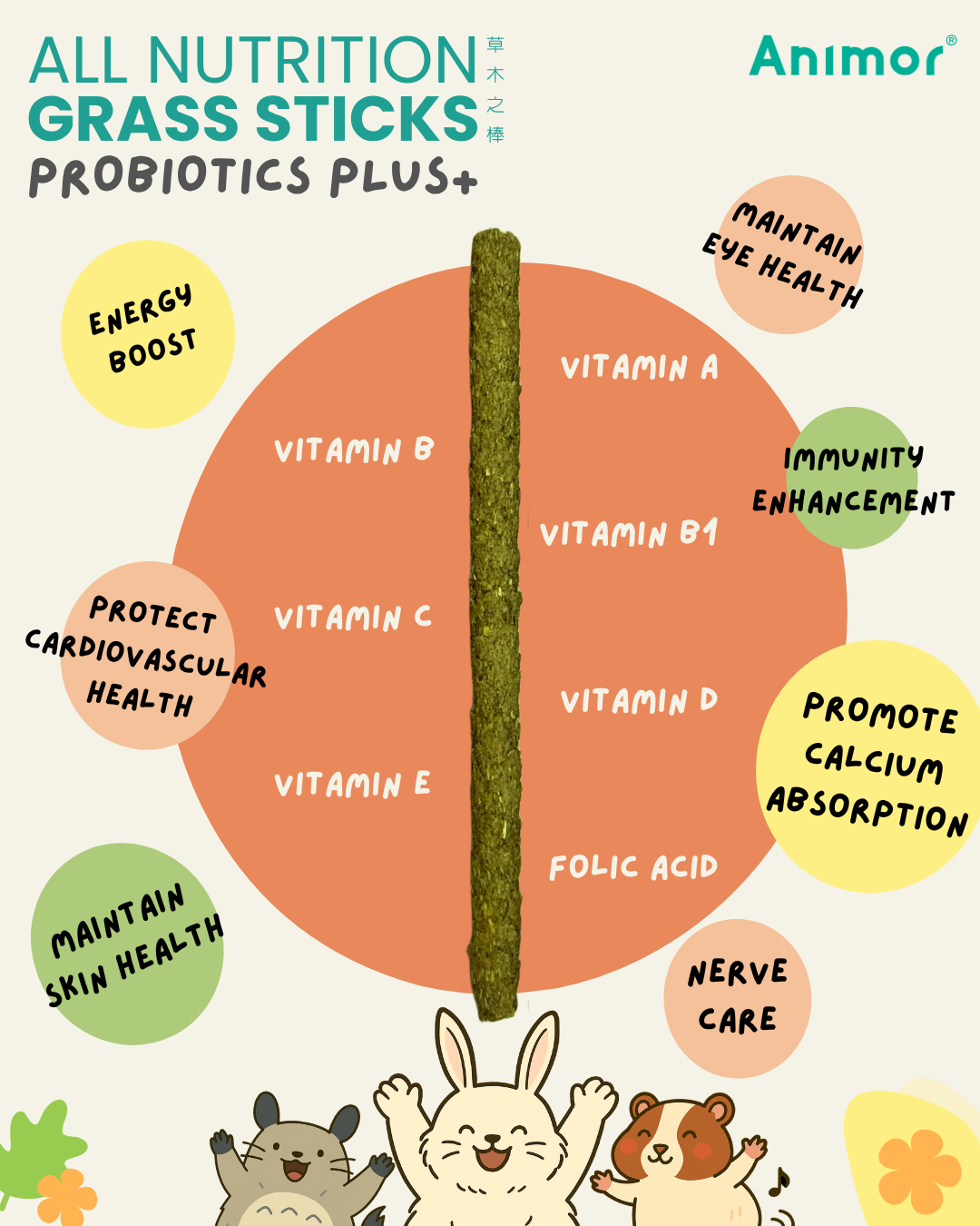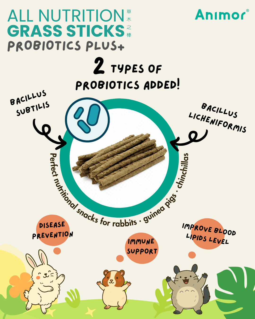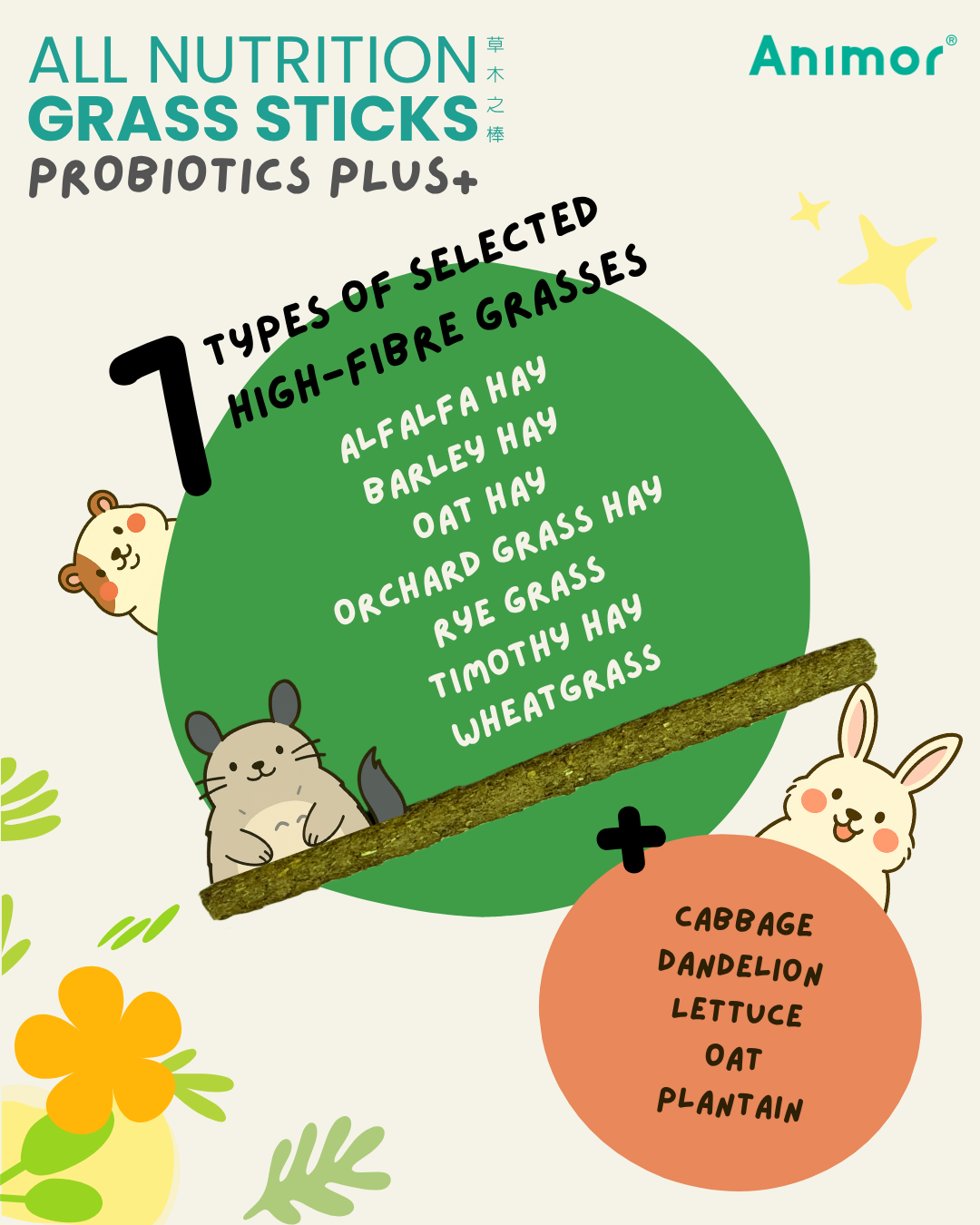ALL NUTRITION GRASS STICKS – PROBIOTICS PLUS 220g (Chinchillas, Guinea Pigs, Rabbits)