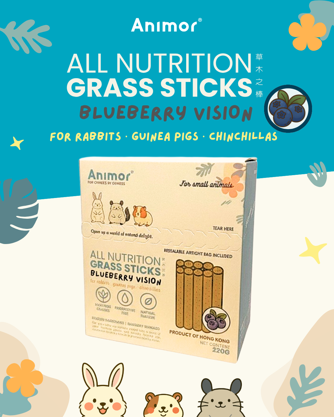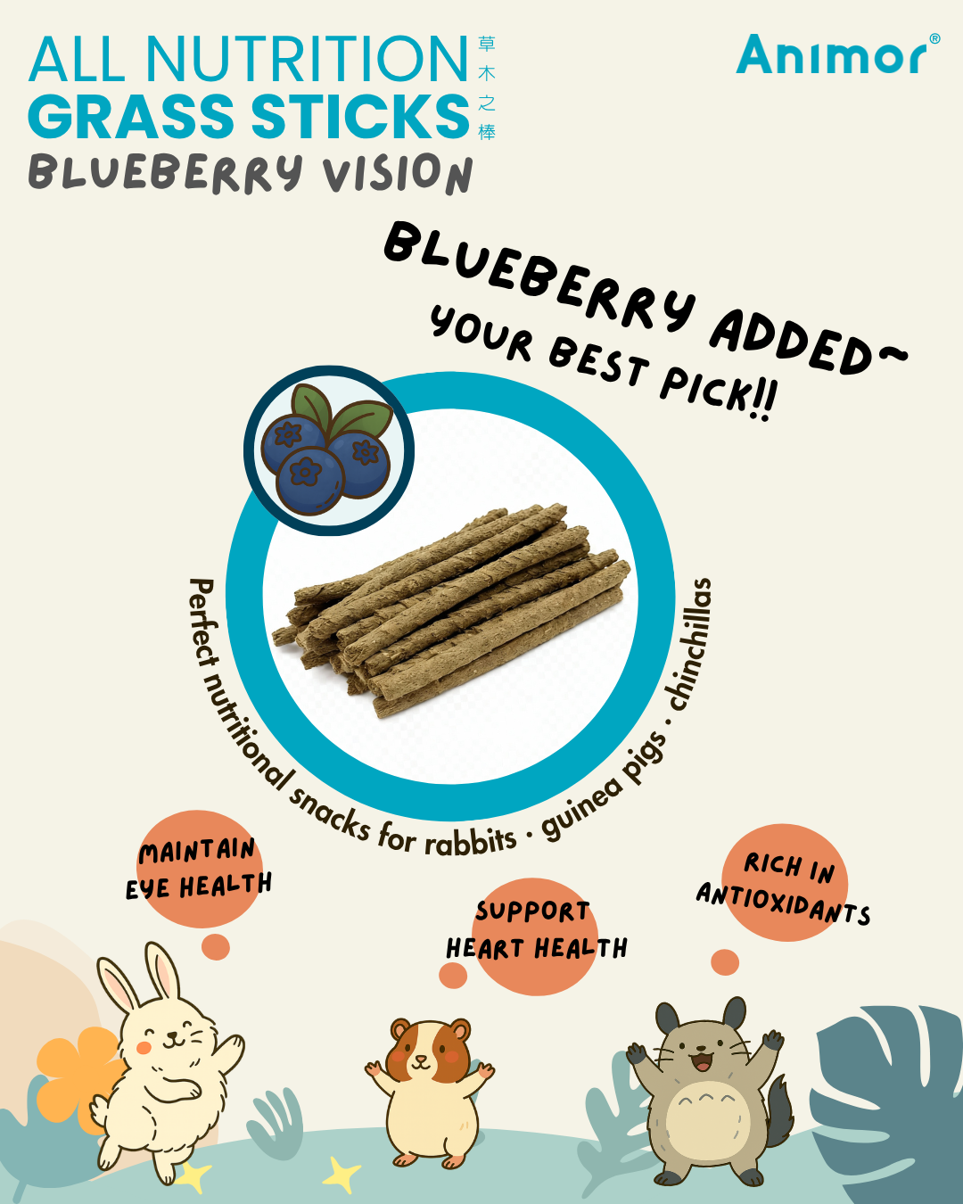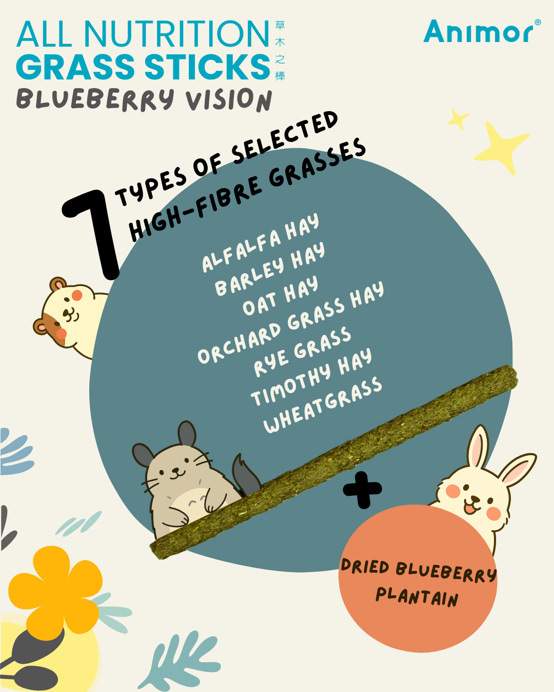 ALL NUTRITION GRASS STICKS – BLUEBERRY VISION 220g (Chinchillas, Guinea Pigs, Rabbits)