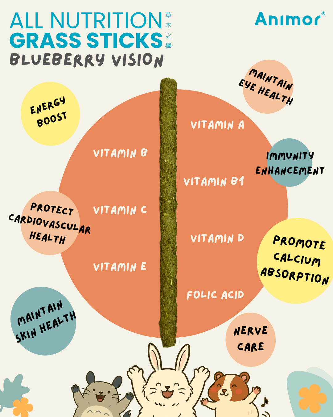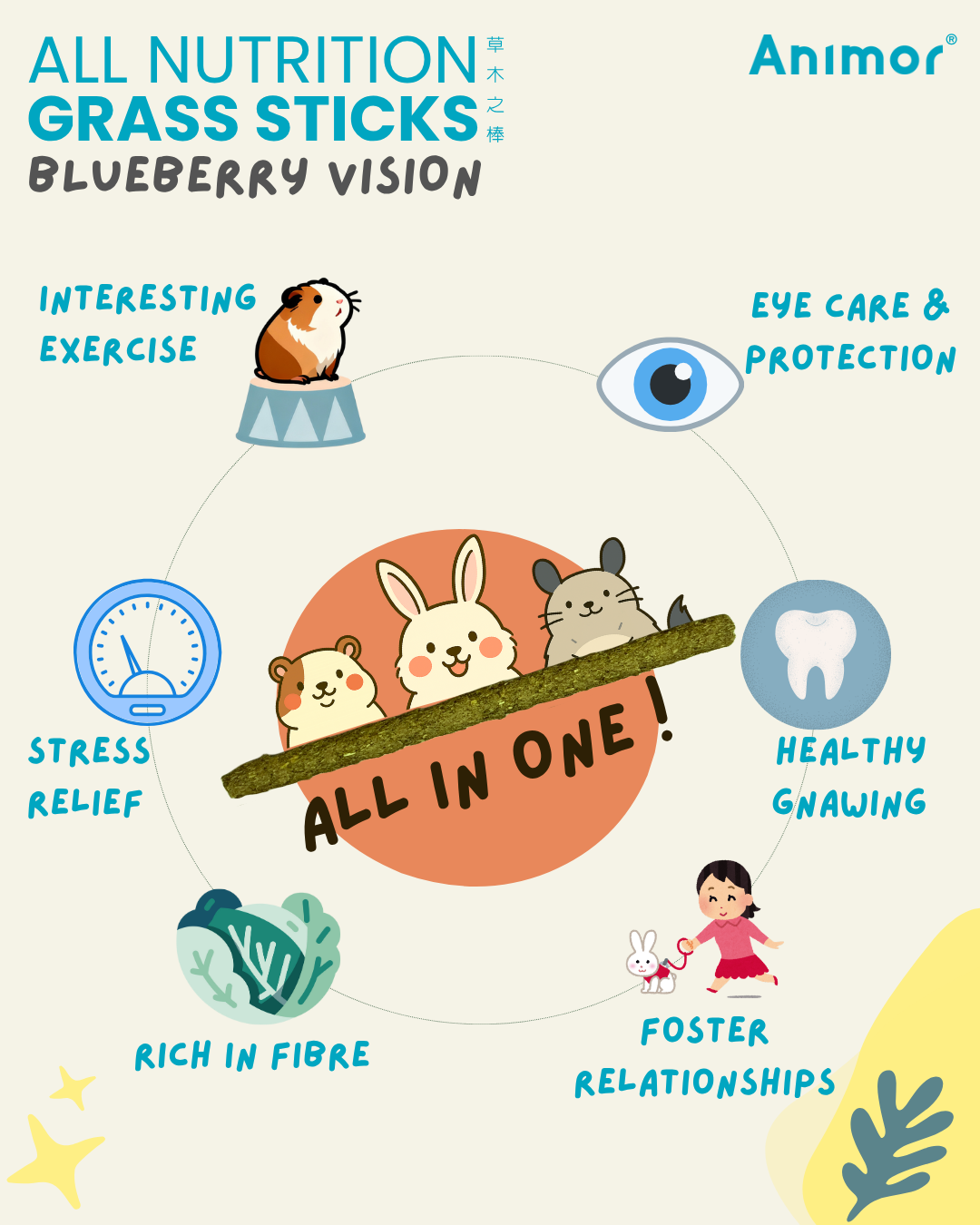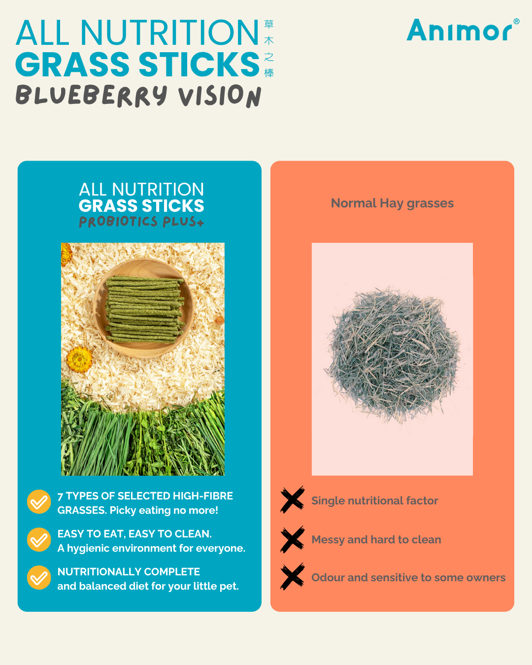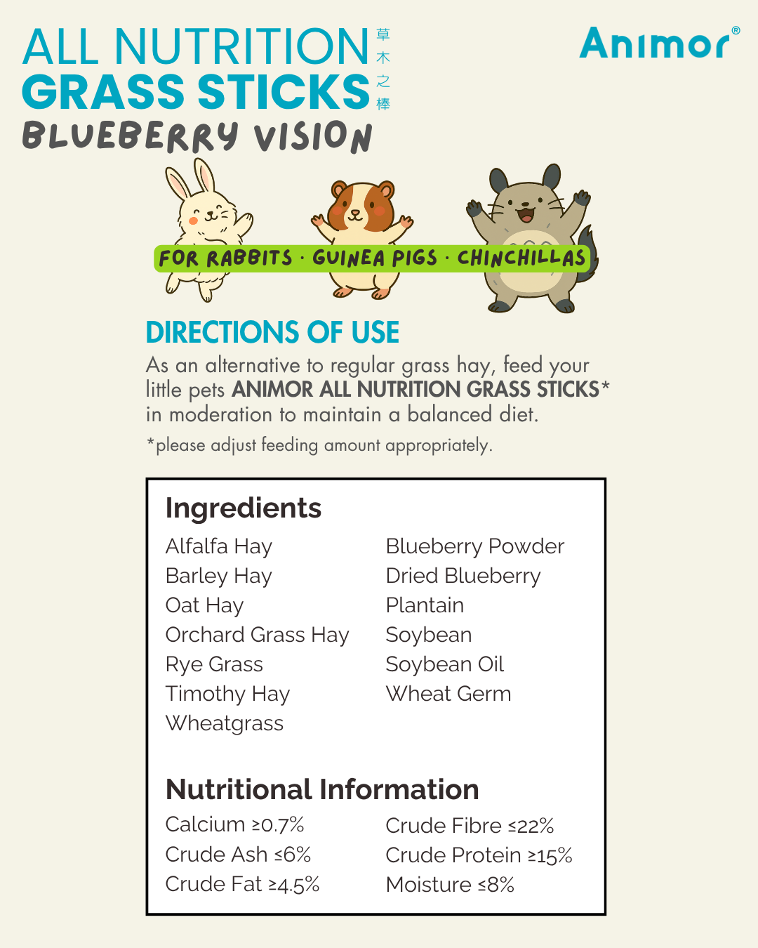 ALL NUTRITION GRASS STICKS – BLUEBERRY VISION 220g (Chinchillas, Guinea Pigs, Rabbits)
