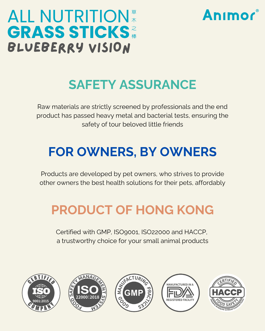 Made from a blend of seven high-fiber grasses, the New formula is adjusted to international nutritional standards for small animals.