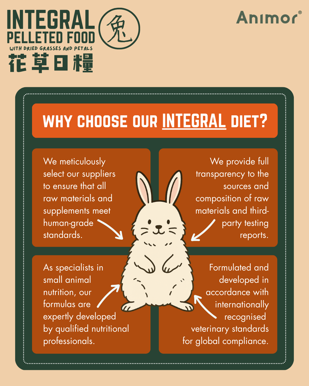 Developed in line with US NRC and EU FEDIAF nutrition guidelines, it is an ideal choice as a primary daily food for rabbits of all ages.